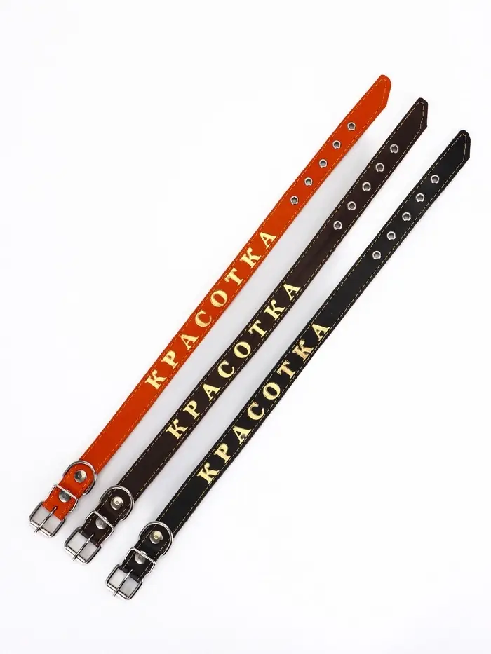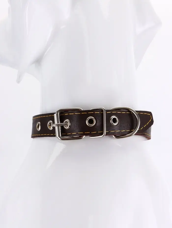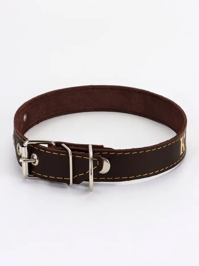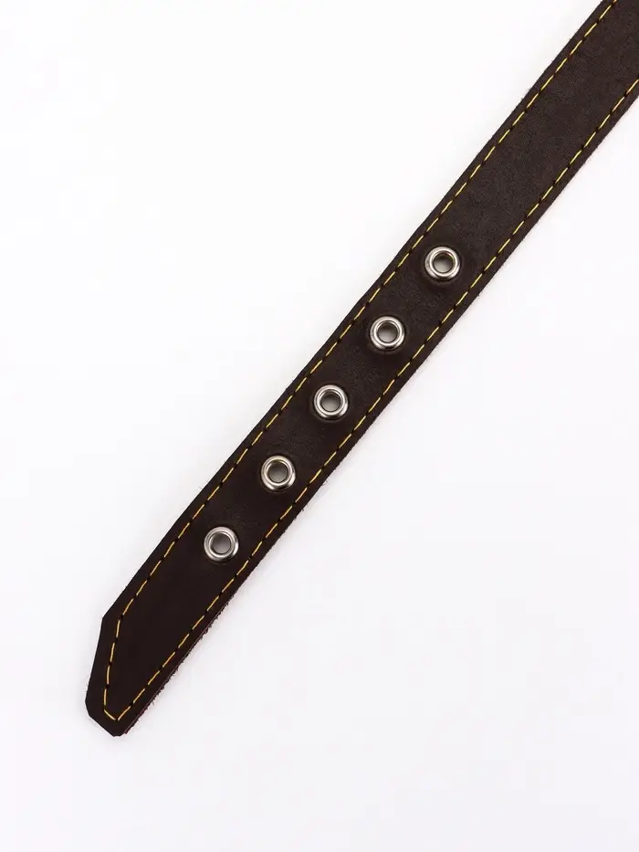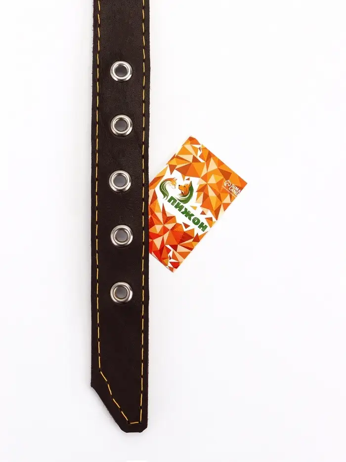 - Однослойная кожа: используется плотная выделка без клеевых прослоек. Такой ошейник не деформируется, не набухает от влаги и служит годами при ежедневном использовании. Края обработаны, не осыпаются со временем.