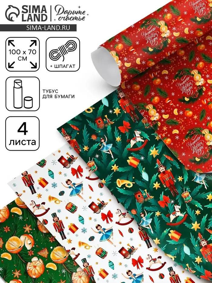 Набор упаковочной бумаги «Зимняя сказка», 4 листа, 70×100 см