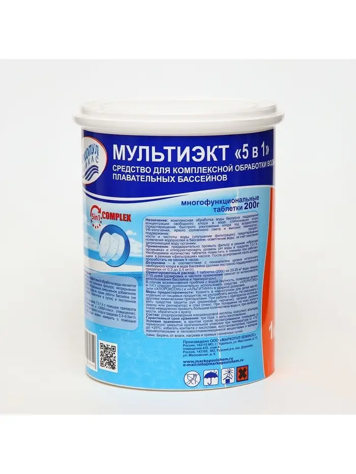 Дезинфицирующее средство «Мультиэкт 5 в 1», для воды в бассейне, комплексный препарат, таблетки 200 г, 1 кг