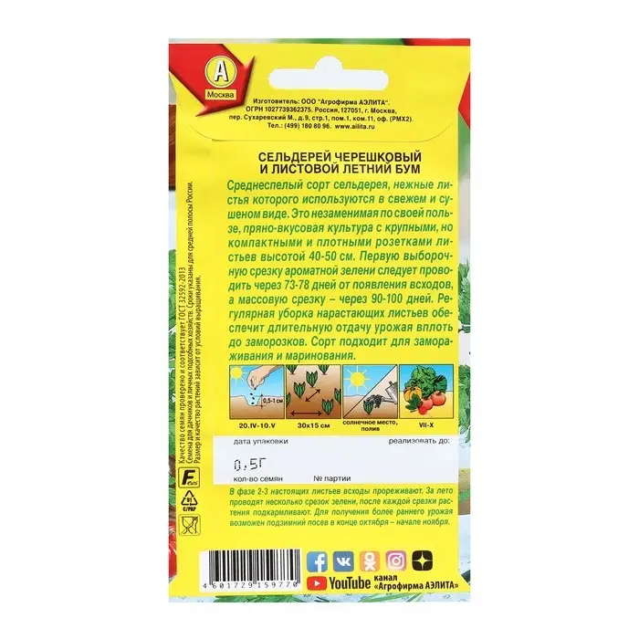 Семена Сельдерей "Черешковый Парус", Сем. Алт, ц/п, 0,5 г