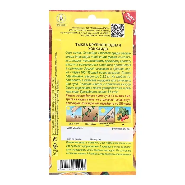 Семена Тыква крупноплодная Хоккайдо Блюда стран мира Ц/П 1г
