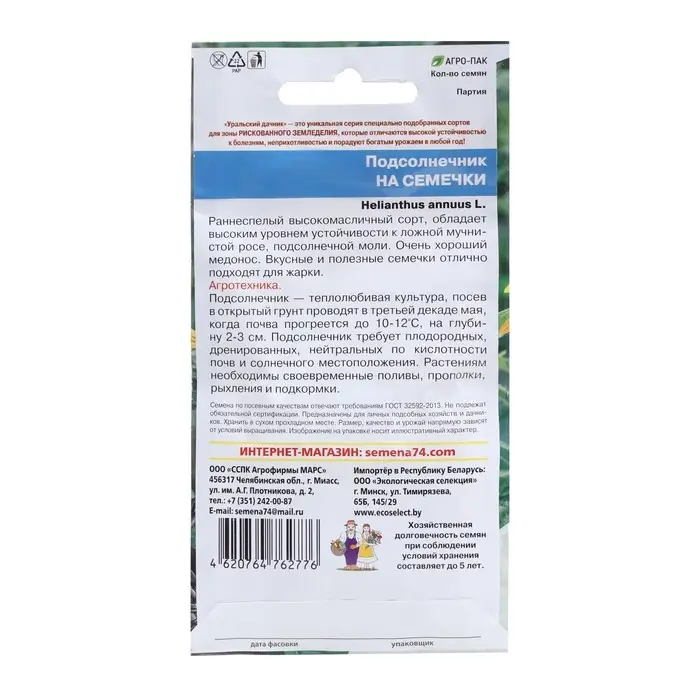 Семена Подсолнечник "Енисей", ц/п, ХИТ х3, 5 г