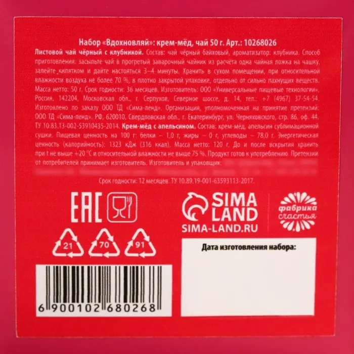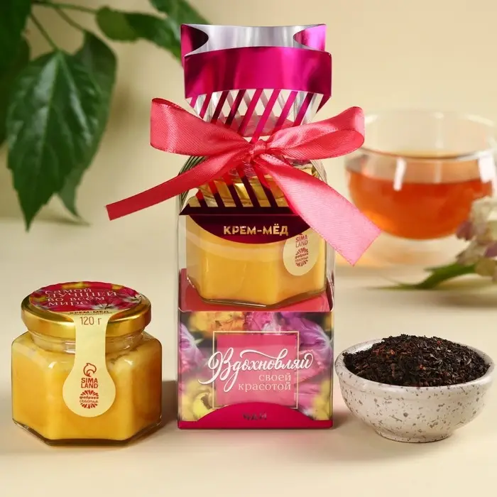 Набор «Вдохновляй»: чай чёрный с клубникой 50 г., крем-мёд с апельсином 120 г.