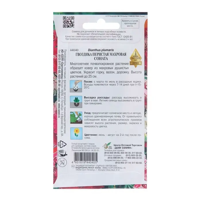 Семена цветов Гвоздика "Соната" перист.махр, 50 шт