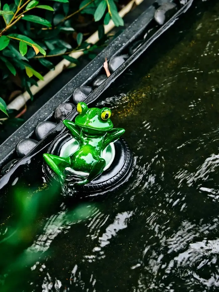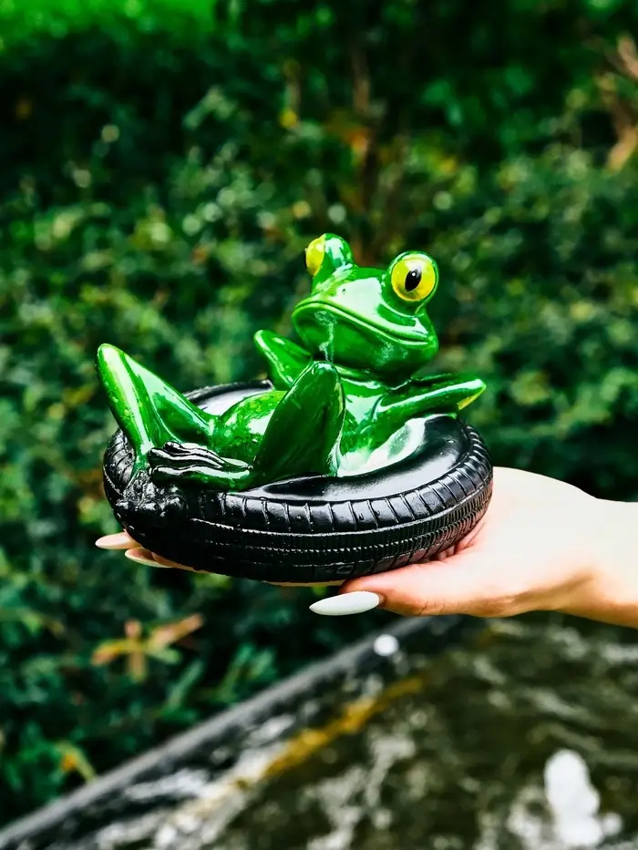 Садовая фигура 14 х 13 х 9,5 см "Лягушка в шине" Водоплавающая