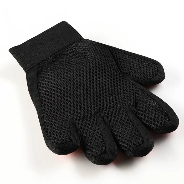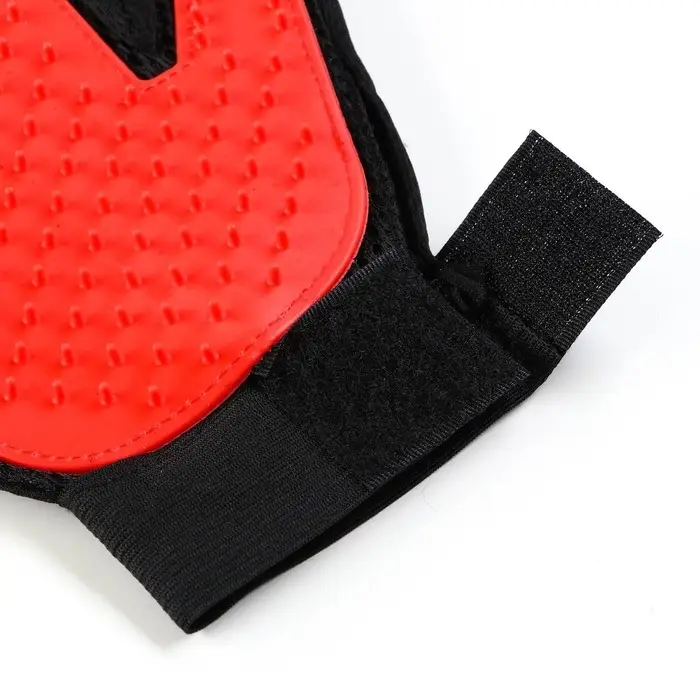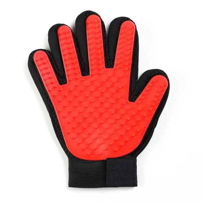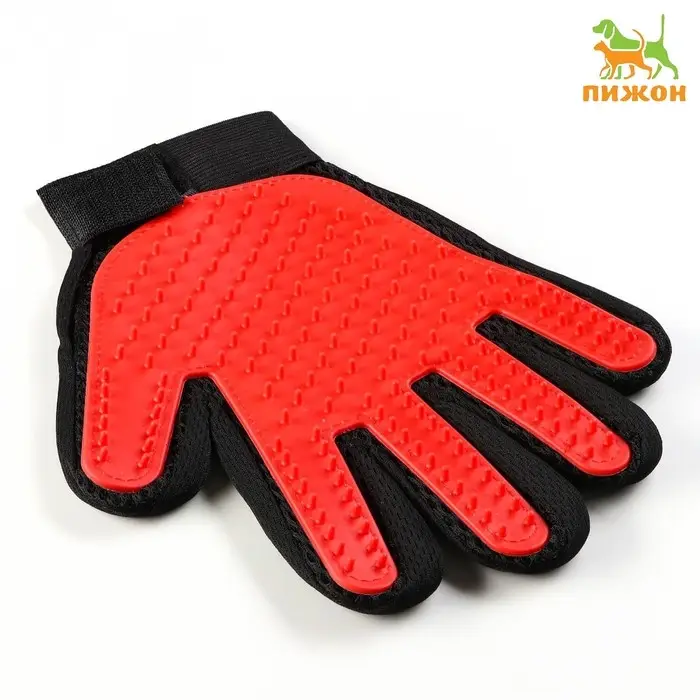 Перчатка-щётка для шерсти, на правую руку, с удлинёнными зубчиками, красная