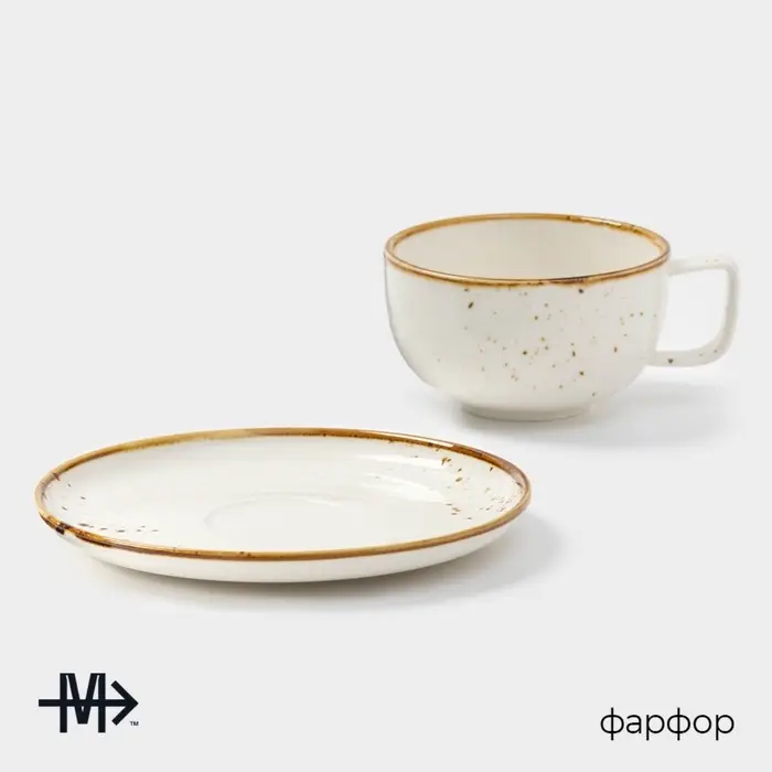 Чайная пара фарфоровая Magistro «Церера», 2 предмета: чашка 250 мл, блюдце d=16,3 см, цвет оранжевый