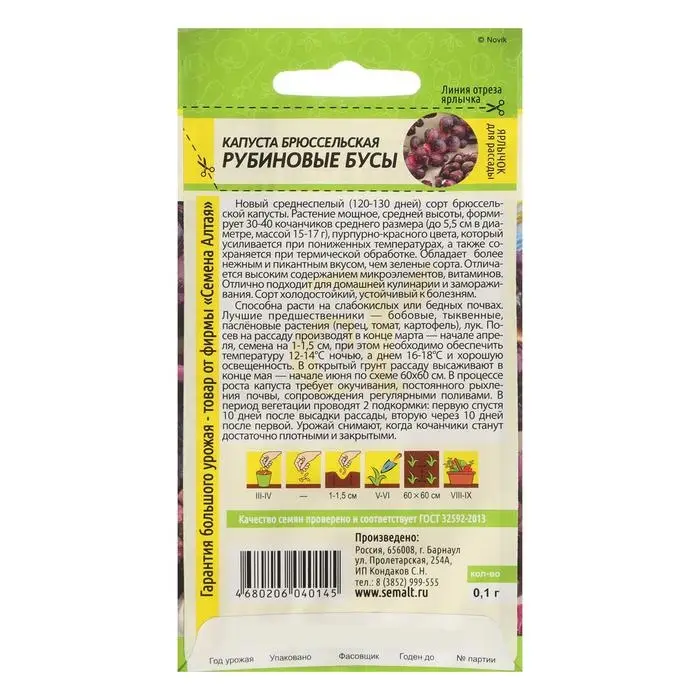 Семена Капуста Брюссельская "Рубиновые Бусы", Сем. Алт, ц/п, 0,1 г
