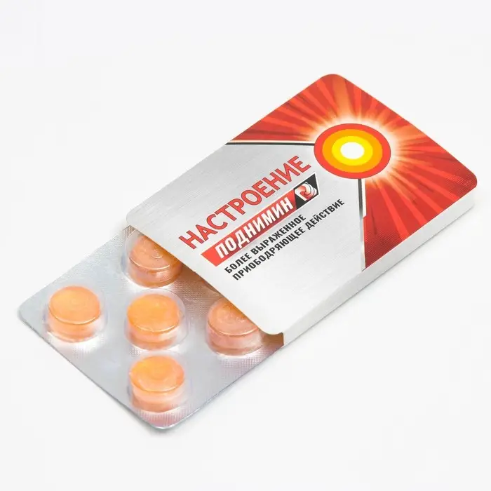 Упаковка жевательной резинки с шуточной надписью "Настроение поднимин" – отличный сюрприз для близкого человека или коллеги. Жвачка в форме маленьких разноцветных шариков упакована в блистер, имеет приятный сладкий вкус апельсина. А шутливое «лекарственное» название поможет поднять настроение в любой ситуации.