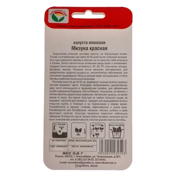 Семена Капуста японская "Мизуна", красная 0,5 гр