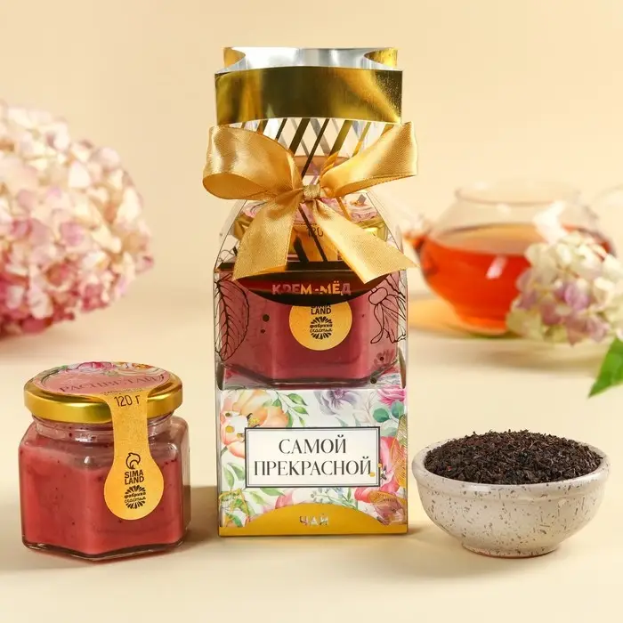 Подарочный набор «Самой прекрасной»: крем-мёд с черникой 120 г., чай 50 г.
