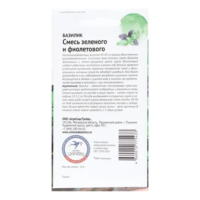 Семена Базилик "Смесь зеленого и фиолетового", 0,4 г
