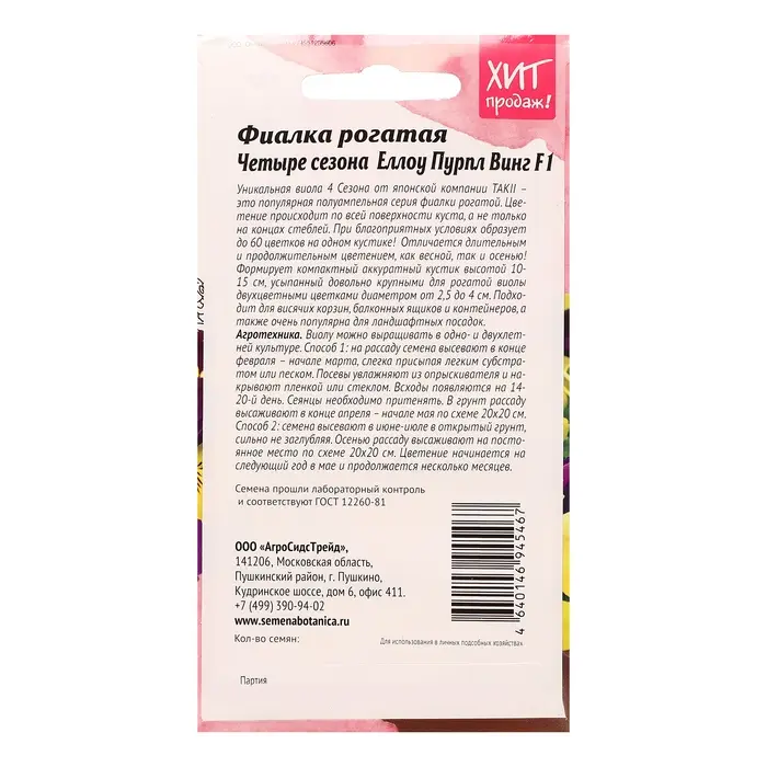 Семена Цветов Фиалка "Еллоу Пурпл Винг", 5 шт