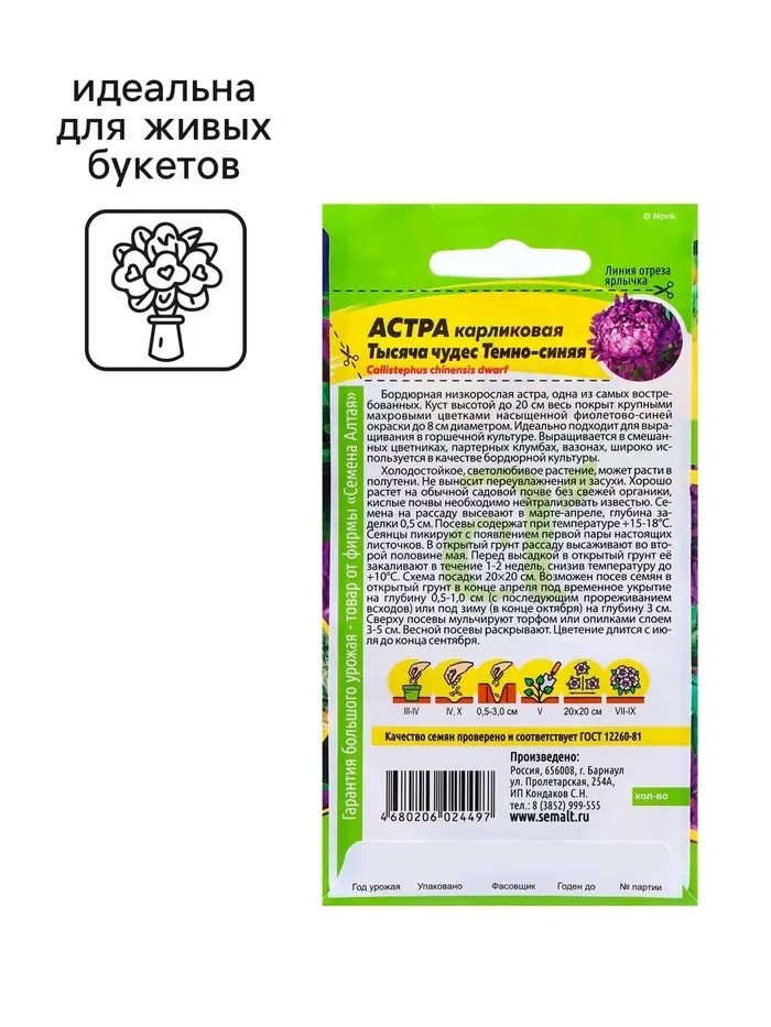 Семена Астра "Тысяча чудес", ц/п, темно-синяя 0,2 гр.