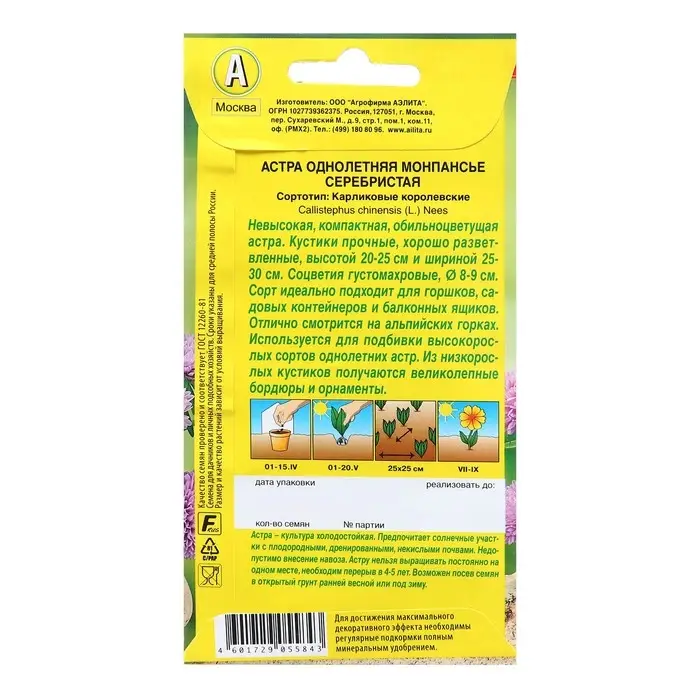 Семена Астра Монпансье серебристая Одн Ц/П 0,2г