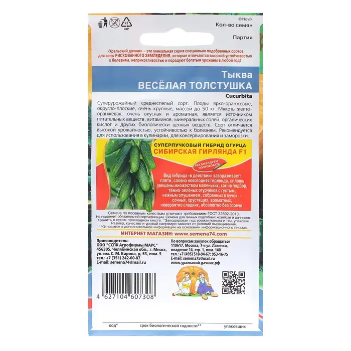 Семена Тыква"Сибирская малышка"3шт* Селекция Агрос