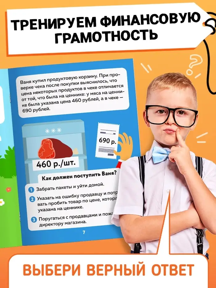 Книга «Финансовые задачки» станет полезным помощником для детей от 7 лет. Эти 44 страницы с ситуационными задачами научат ребёнка принимать осознанные финансовые решения и грамотно распоряжаться деньгами.