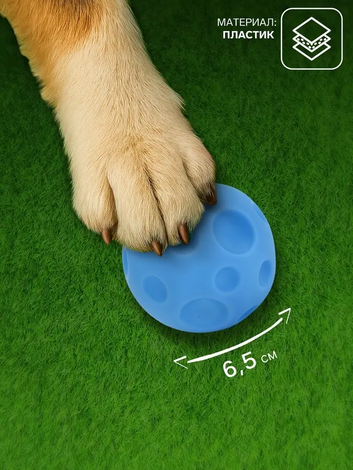 Игрушка пищащая "Мячик" для собак, 6,5 см, голубая