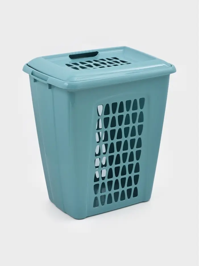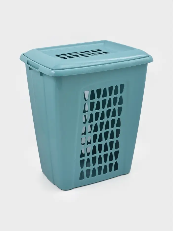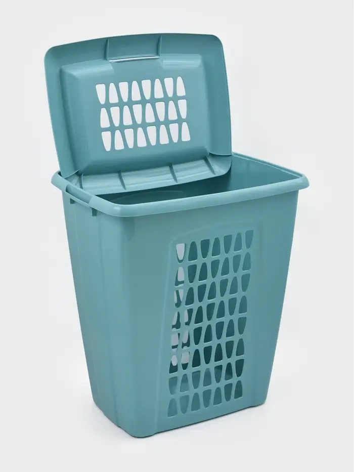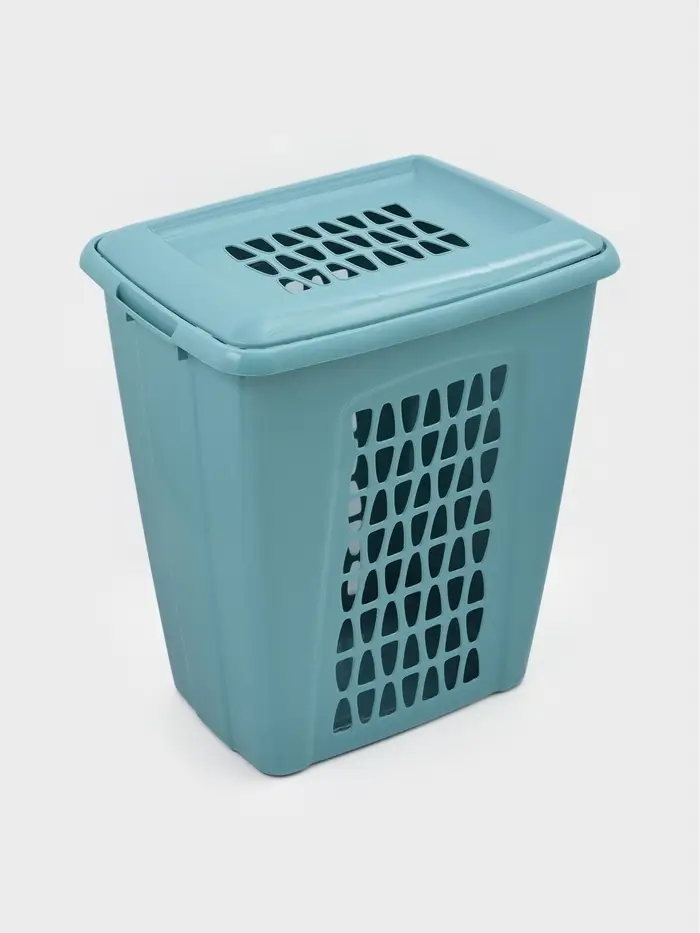 Корзина для белья с крышкой «Молетта», 60 л, 47.9×36.9×55 см, прямоугольная, бирюзовая