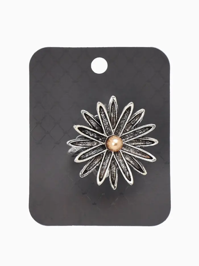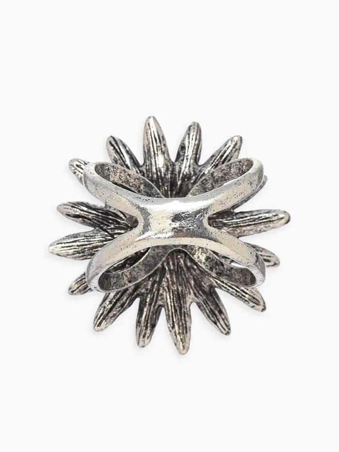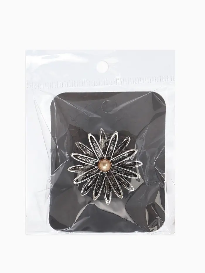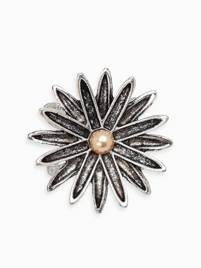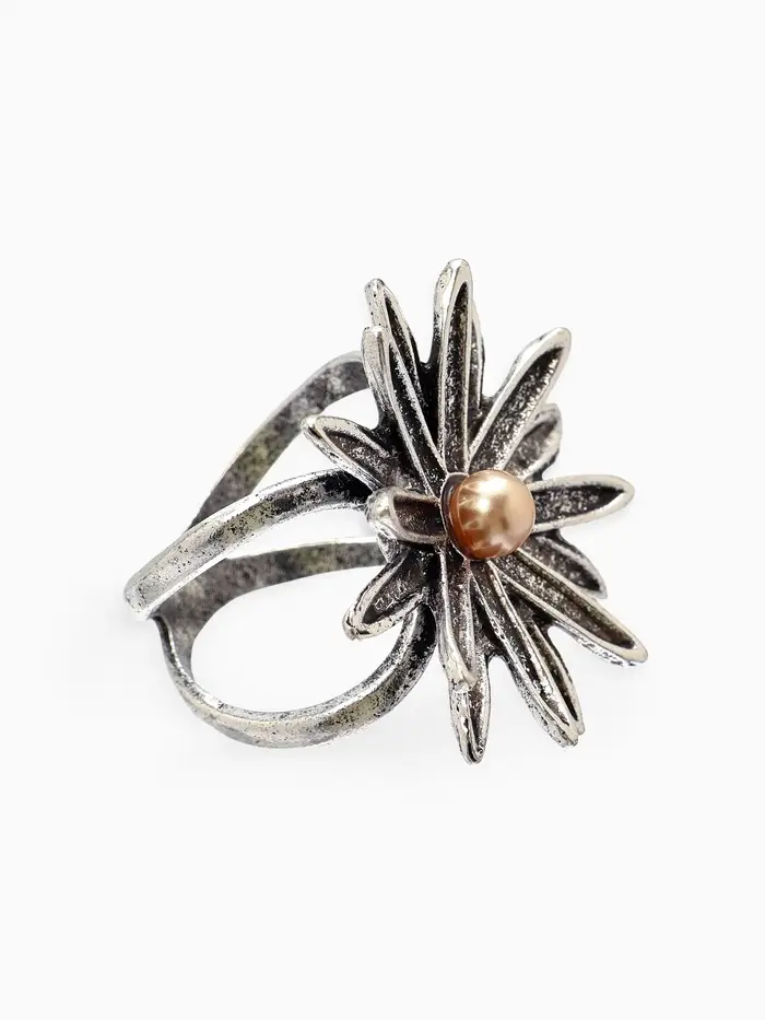Кольцо для платка "Цветок Астра", цвет белый в чернёном серебре
