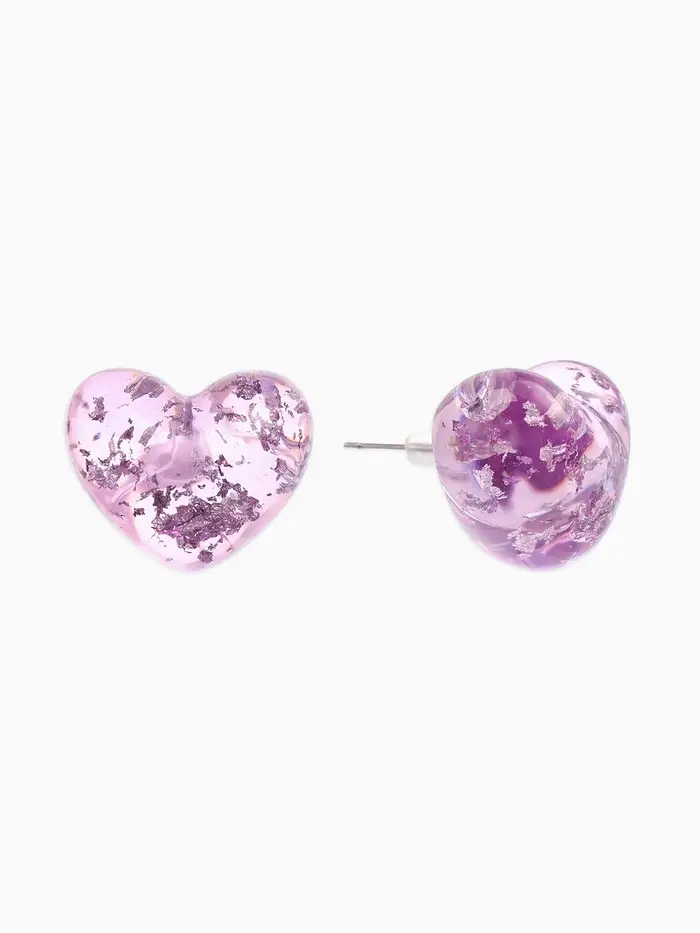Серьги "Сердце блестка", цвет сиреневый с паталью серебро