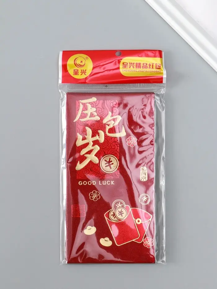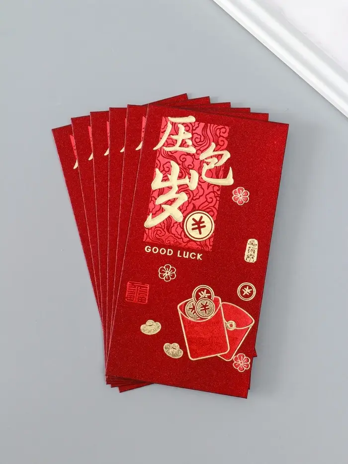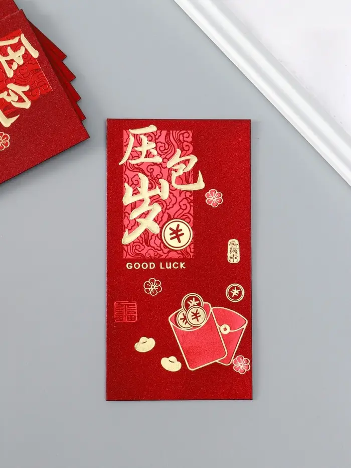 Конверт денежный бумага "Пожелание удачи, богатства" набор 6 шт тиснение блеск 9х17 см
