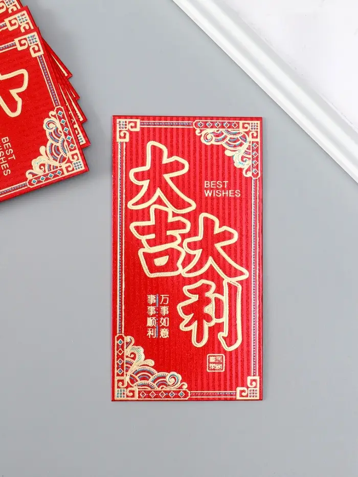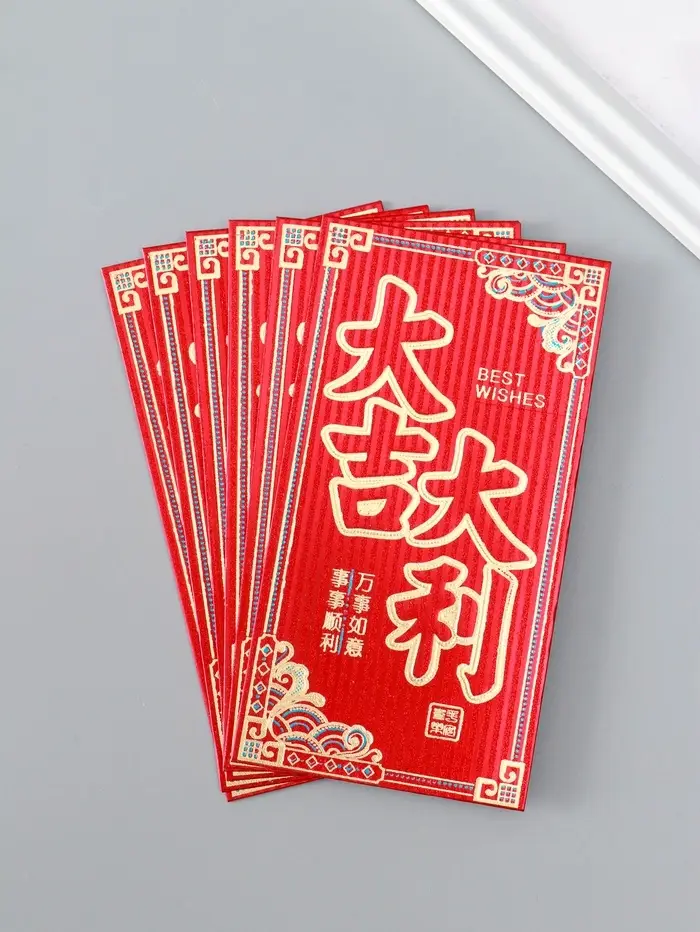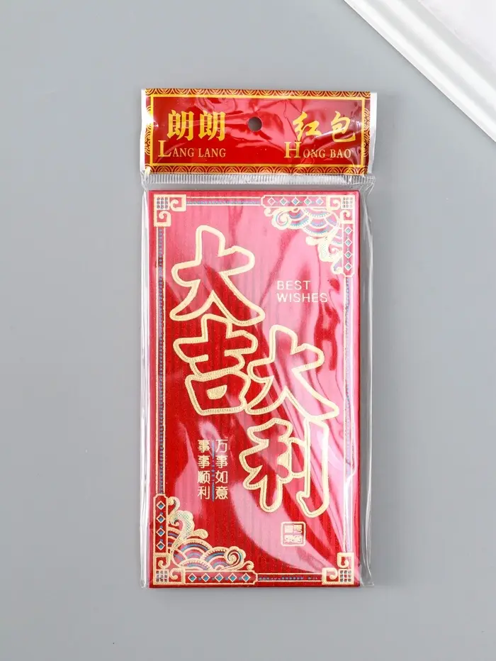 Конверт денежный бумага "Пожелание удачи" набор 6 шт тиснение блеск 9х17 см
