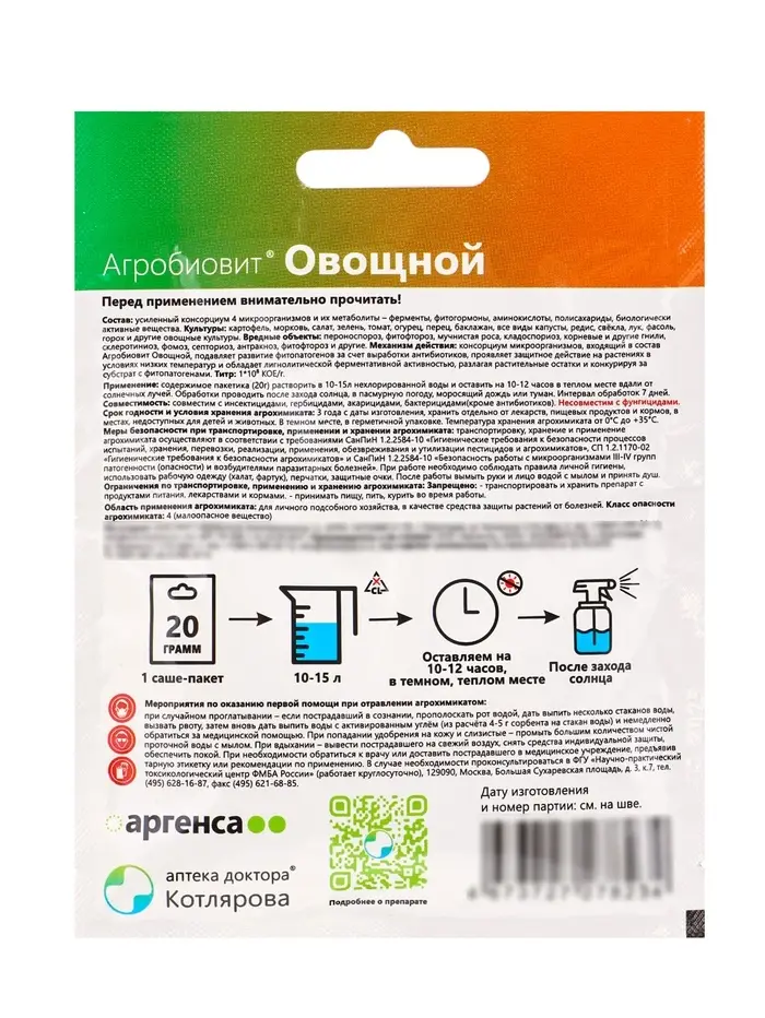 Агробиовит Овощной 20 г. саше-пакет