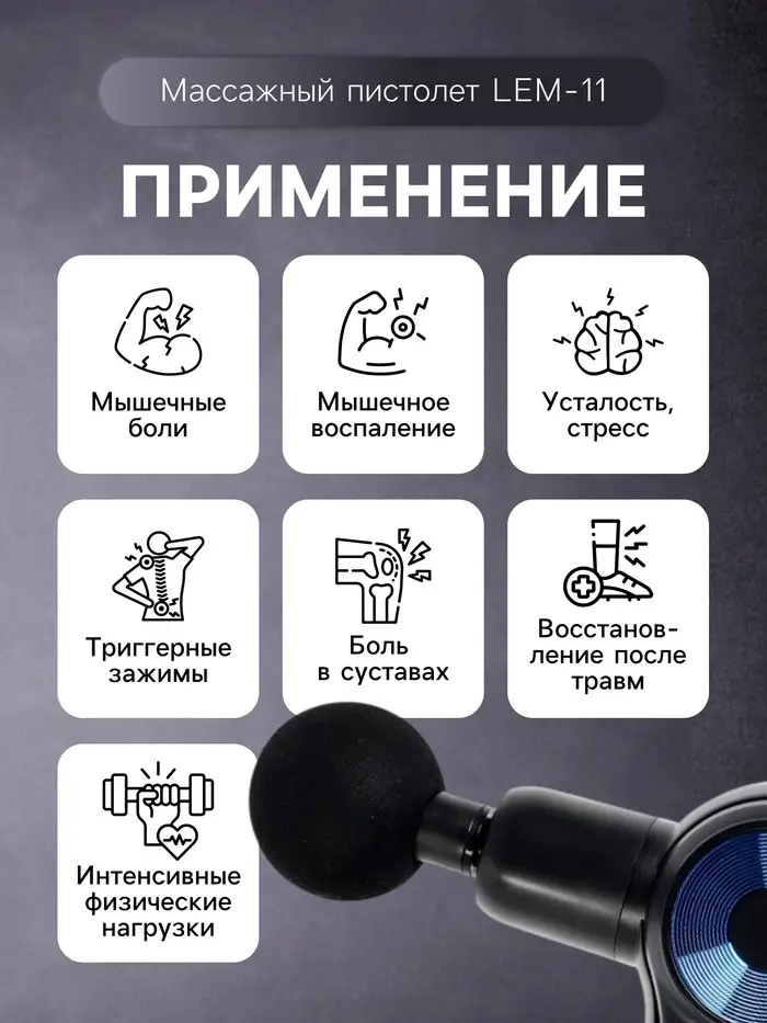 Сочетание 9 режимов скорости и продуманного набора насадок делает массажёр LEM-11 универсальным решением для домашнего, спортивного и восстановительного массажа.