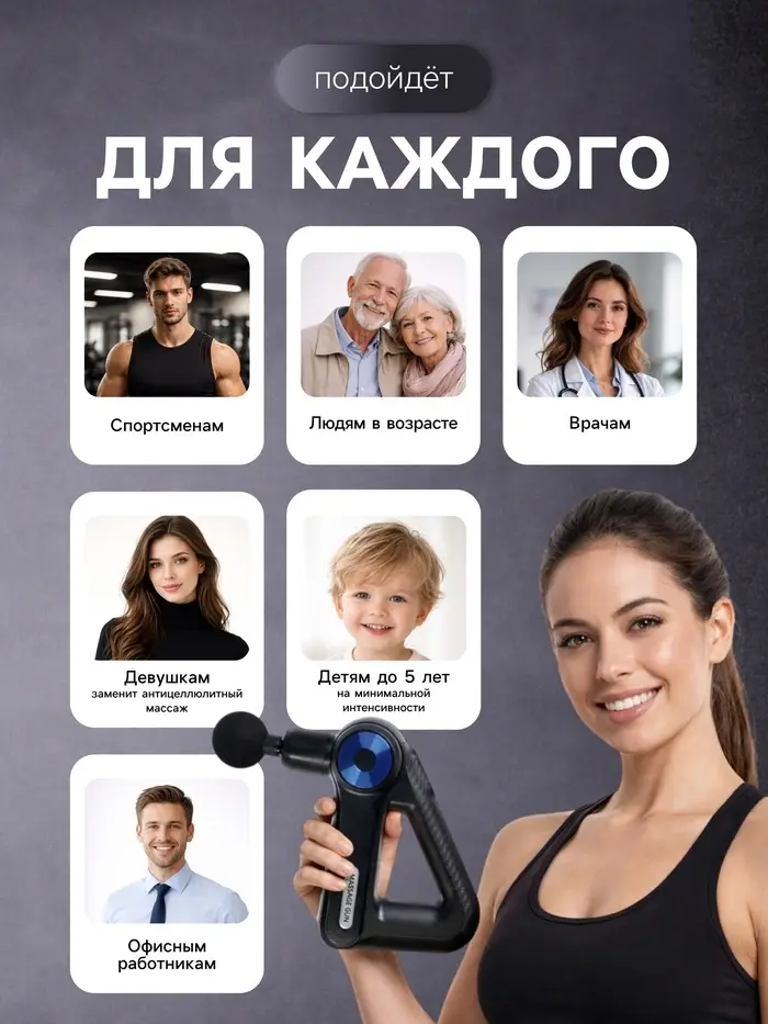 Этот перкуссионный массажёр создан для комплексного восстановления мышц и глубокого расслабления после физических нагрузок. Девять режимов интенсивности и девять насадок обеспечивают адаптивный массаж для любой зоны тела — шеи, плеч, спины, рук и ног. Эргономичный корпус и питание от аккумулятора позволяют использовать устройство в любых условиях, без ограничений проводами.