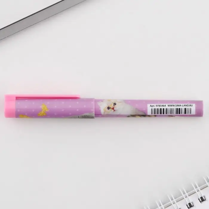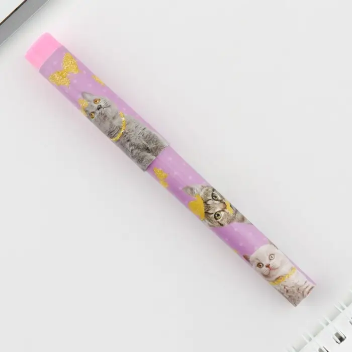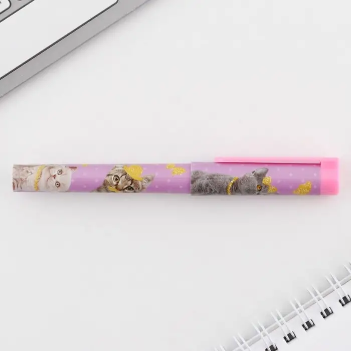 Ручка шариковая синяя паста 0.7 мм с колпачком «Котики» пластик