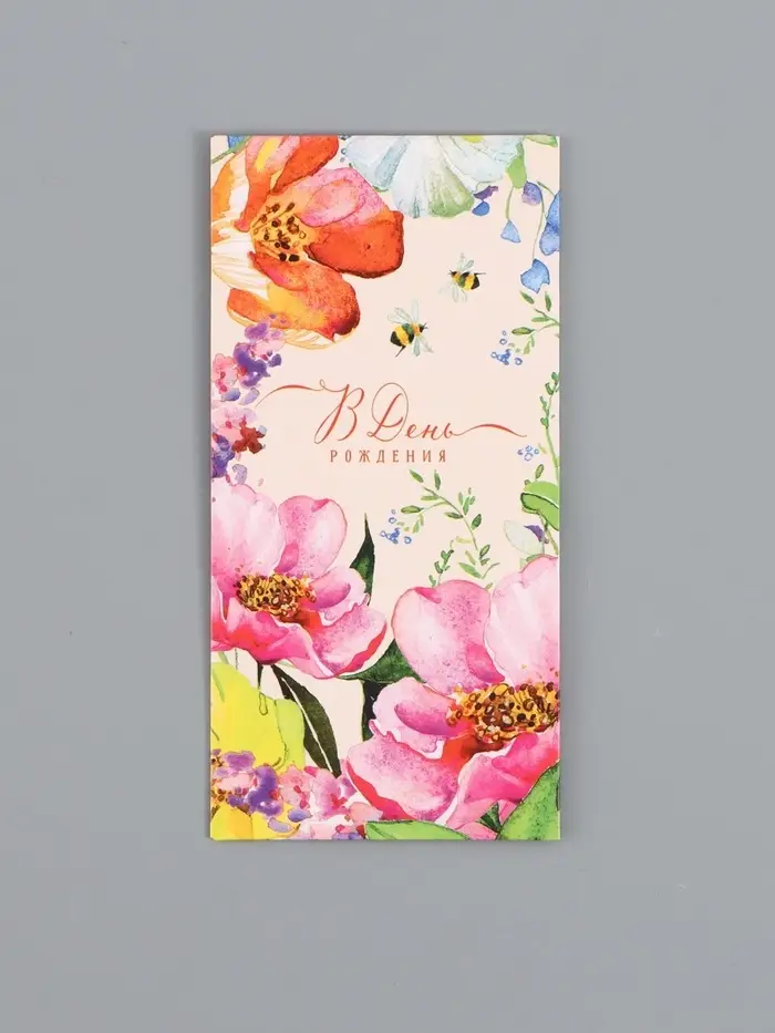 Конверт для денег «В день рождения», цветы на персиковом, 16,5 х 8 см