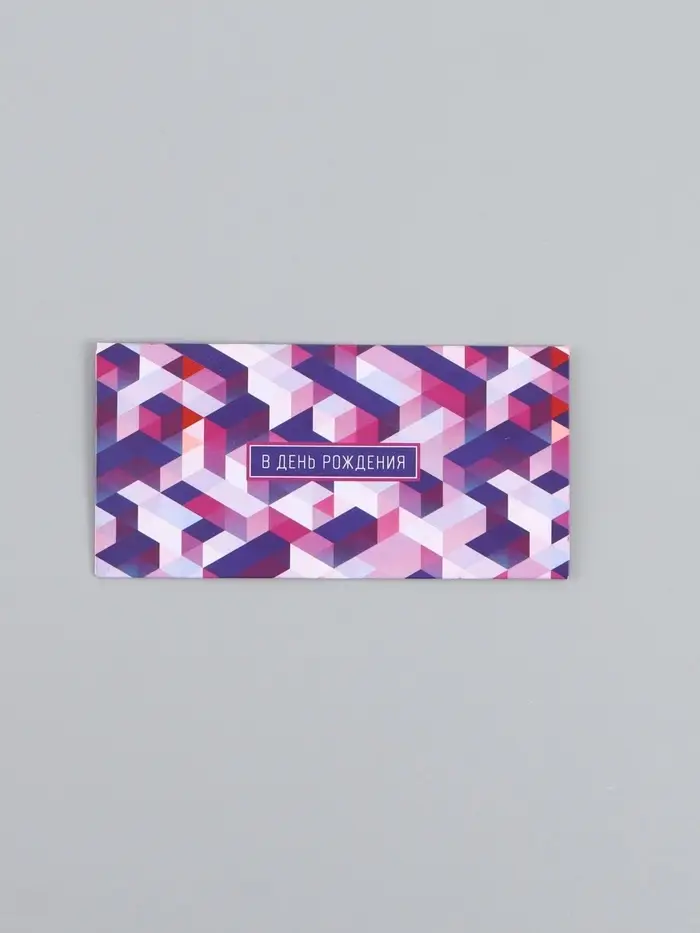Конверт для денег «В день рождения», орнамент сиреневый, 16,5 х 8 см