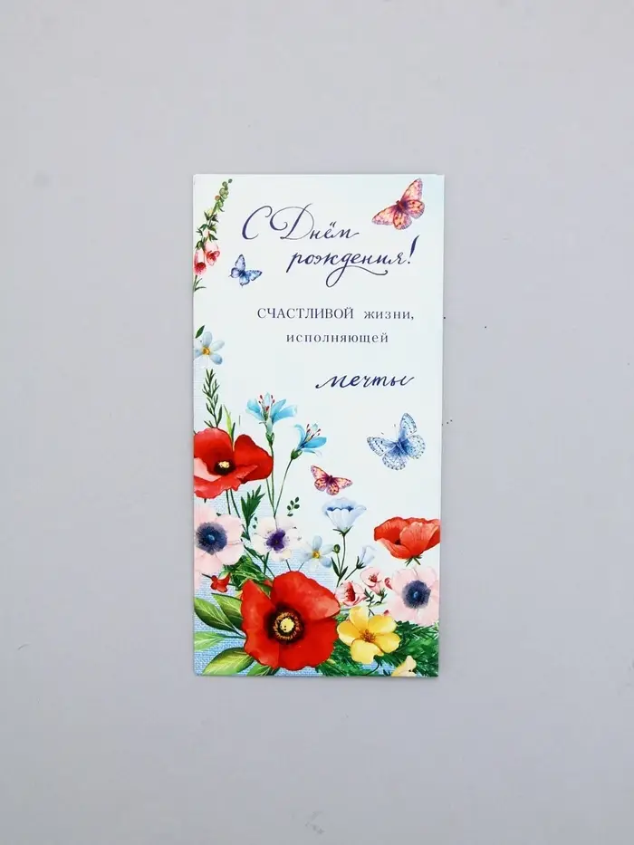 Конверт для денег «В день рождения», маки, 16,5 х 8 см