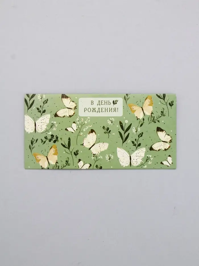 Конверт для денег «В День Рождения!», бабочки на зелёном, 16,5 х 8 см