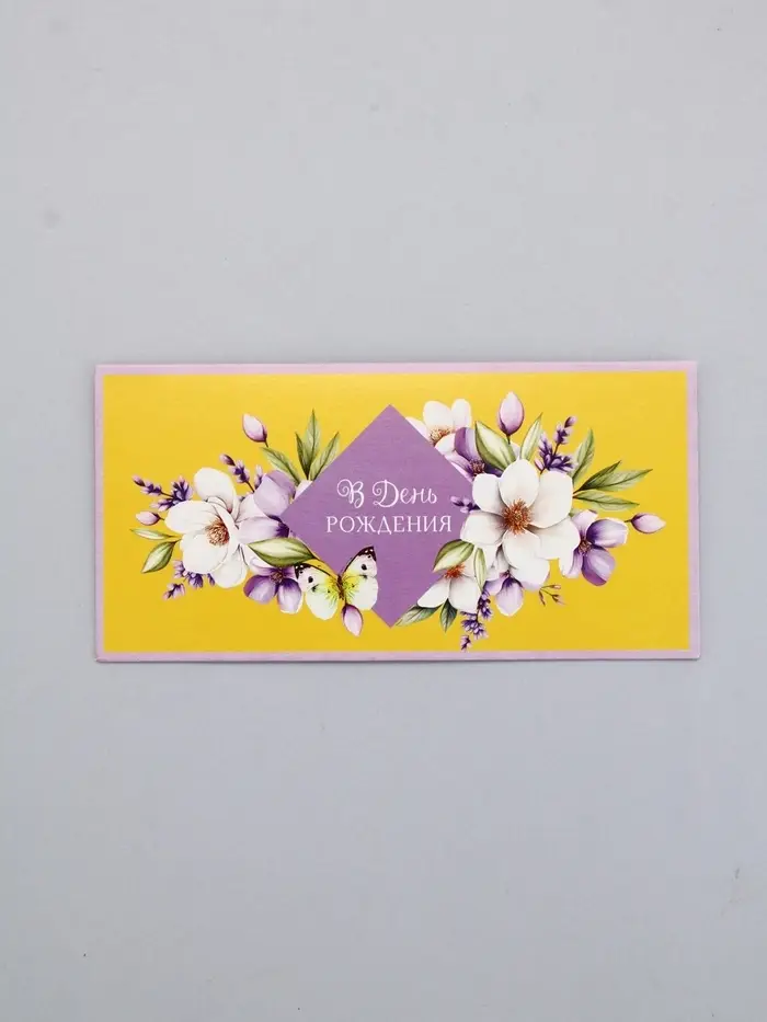 Конверт для денег «В День Рождения!», сиреневый и жёлтый, 16,5 х 8 см