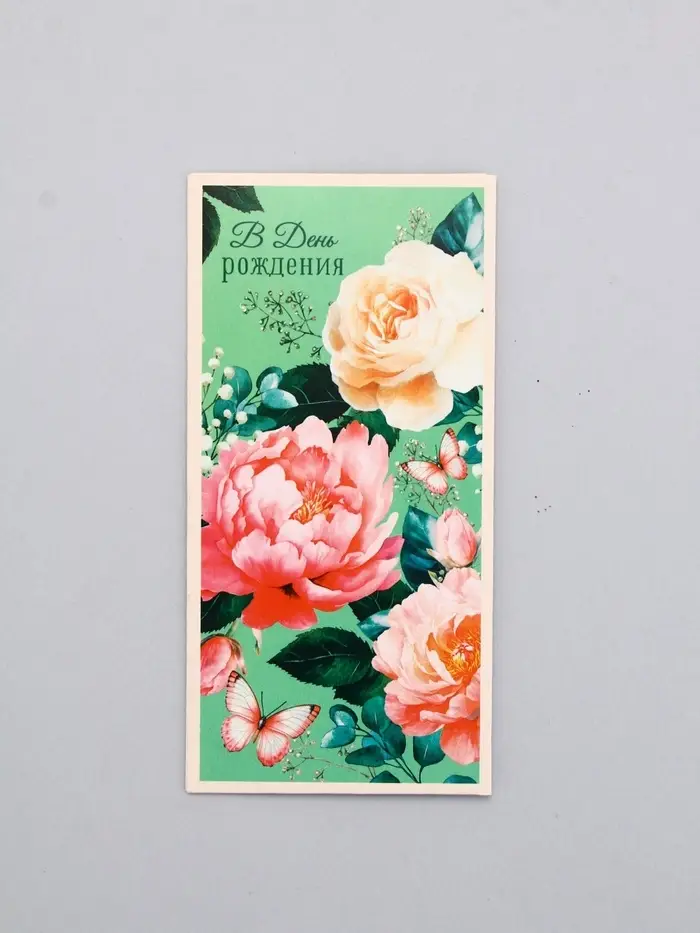 Конверт для денег «В День Рождения!», бабочки и зелёный, 16,5 х 8 см