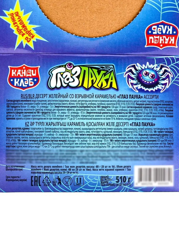 Десерт желейный «Глаз паука», с взрывной карамелью, ассорти, 17 г
