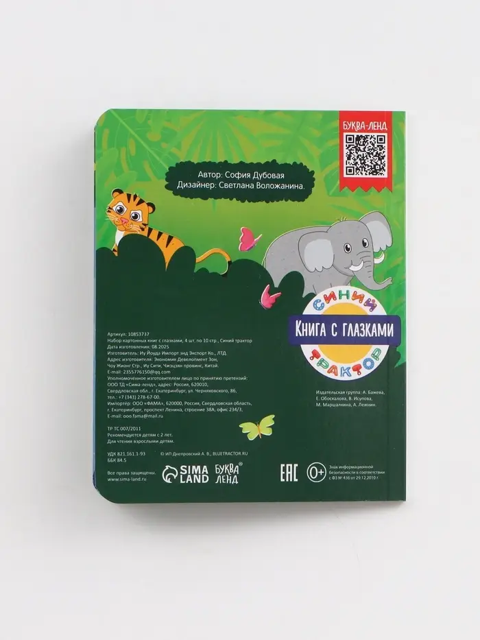 Набор картонных книг с глазками, 4 шт по 10 стр., Синий трактор
