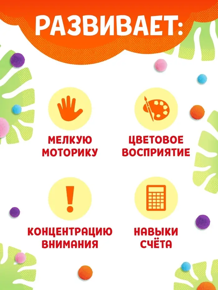 - Развивает мелкую моторику и логику. Прикрепляя элементы, малыш тренирует пальчики, учится сопоставлять, выбирать и решать — всё это важно для речи и подготовки к школе.