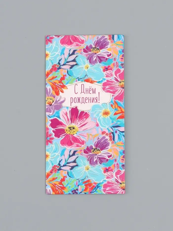 Конверт для денег «С днём рождения», цветы на голубом, 16,5 х 8 см
