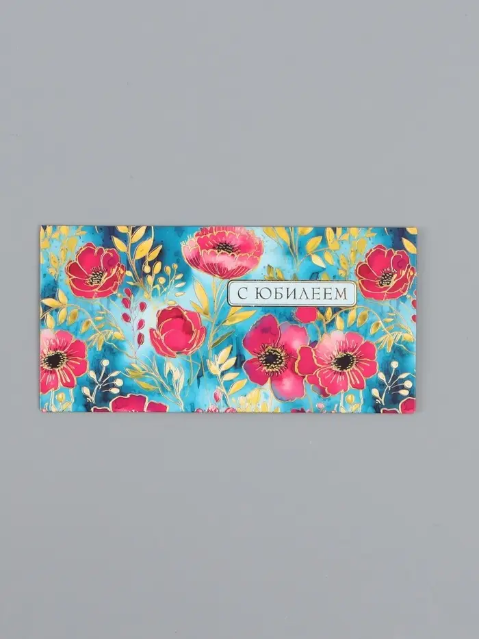 Конверт для денег «С юбилеем», розовые цветы, 16,5 х 8 см