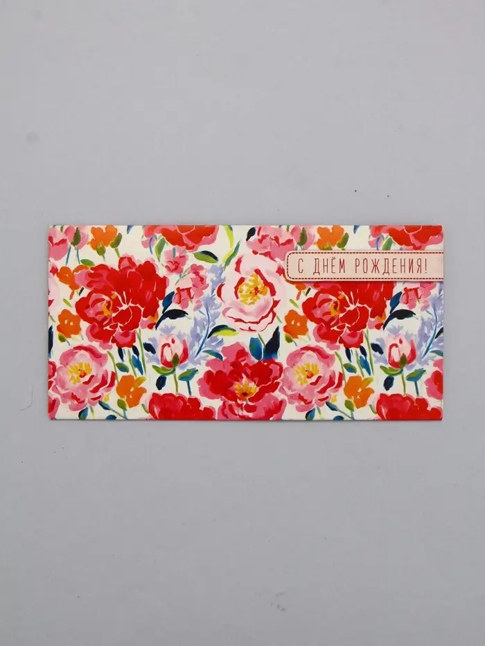 Конверт для денег «С днём рождения», красные цветы, 16,5 х 8 см