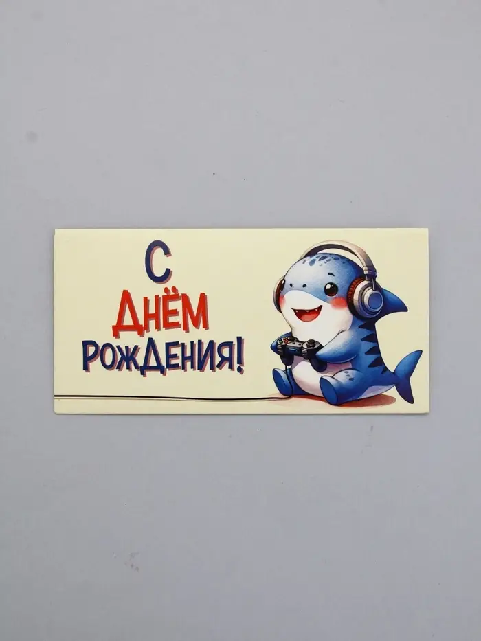 Конверт для денег «С Днем Рождения!», акула, 16,5 х 8 см