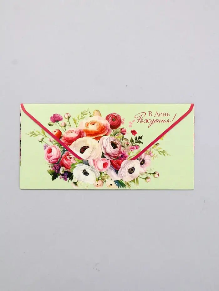 Конверт для денег «В День Рождения!», светло-зеленый, 16,5 х 8 см