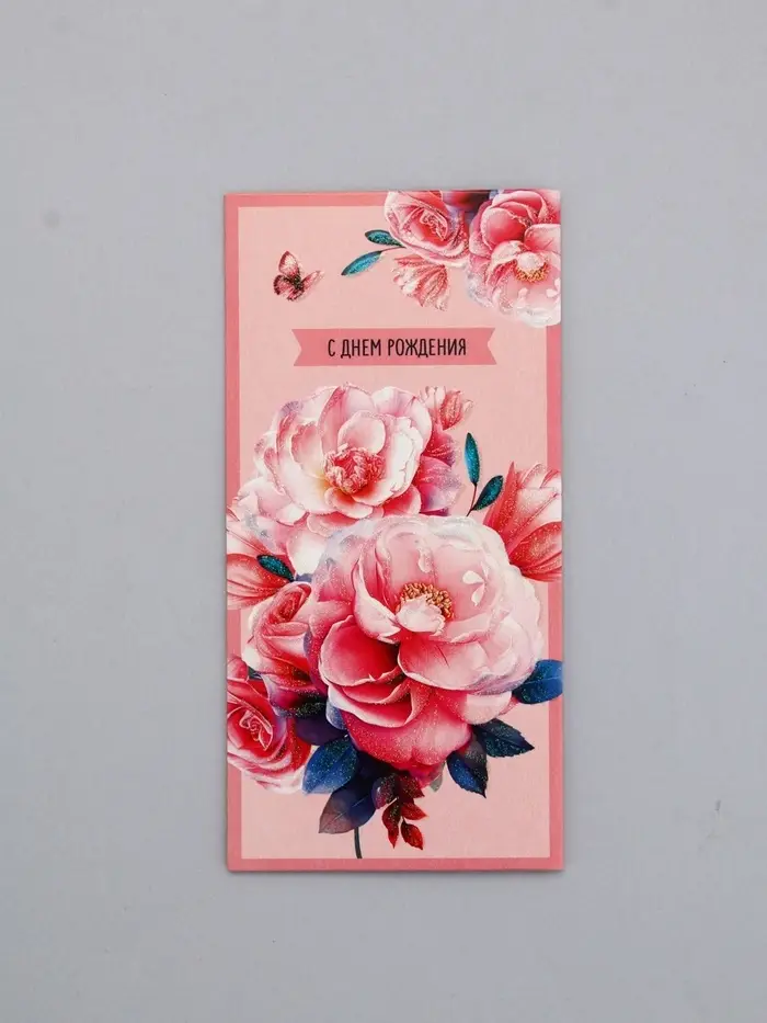 Конверт для денег «В День Рождения!», пионы, 16,5 х 8 см