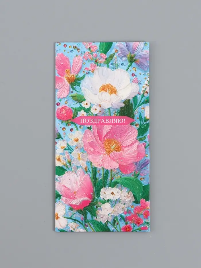 Конверт для денег «Поздравляю!», объемные цветы, 16,5 х 8 см