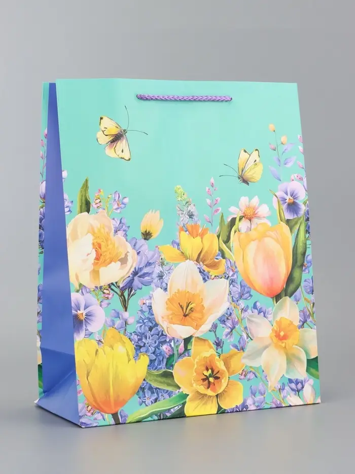 Пакет подарочный ламинированный, "Цветочная панорама" 26 х 12 х 32 см