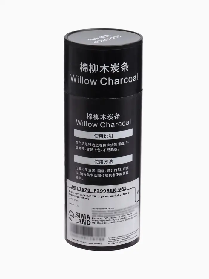 Уголь натуральный 20 штук, d=7-9 мм, в картонном тубусе, черный