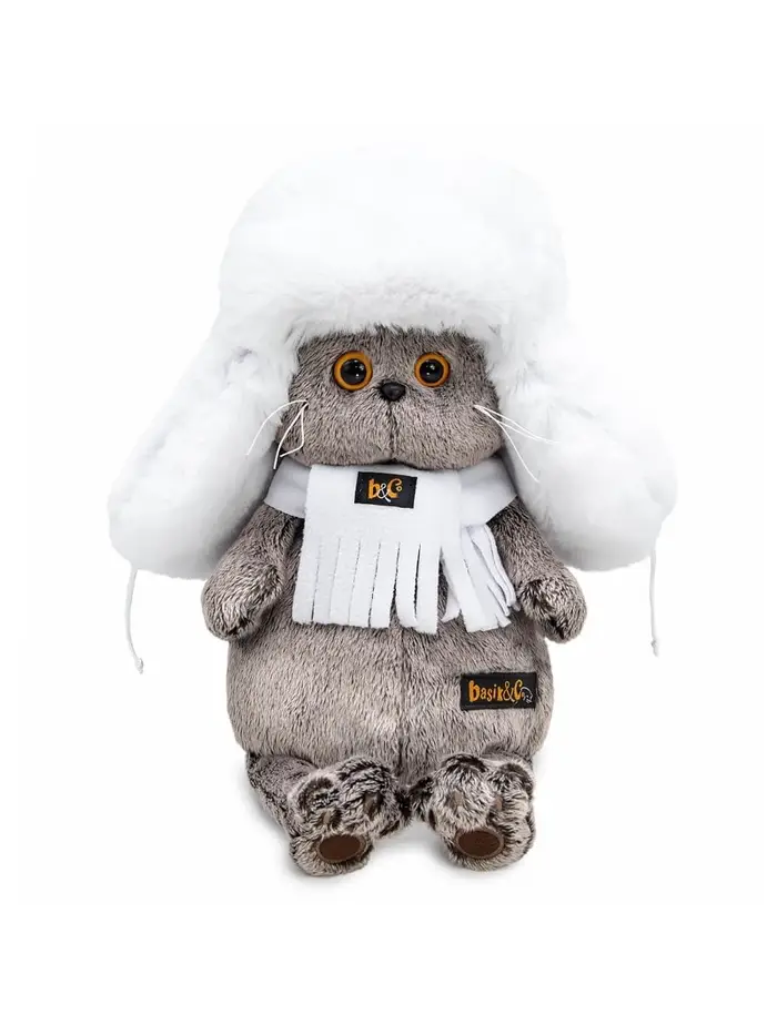 Мягкая игрушка "Кот Басик в белой меховой шапке", 22 см Ks22-302